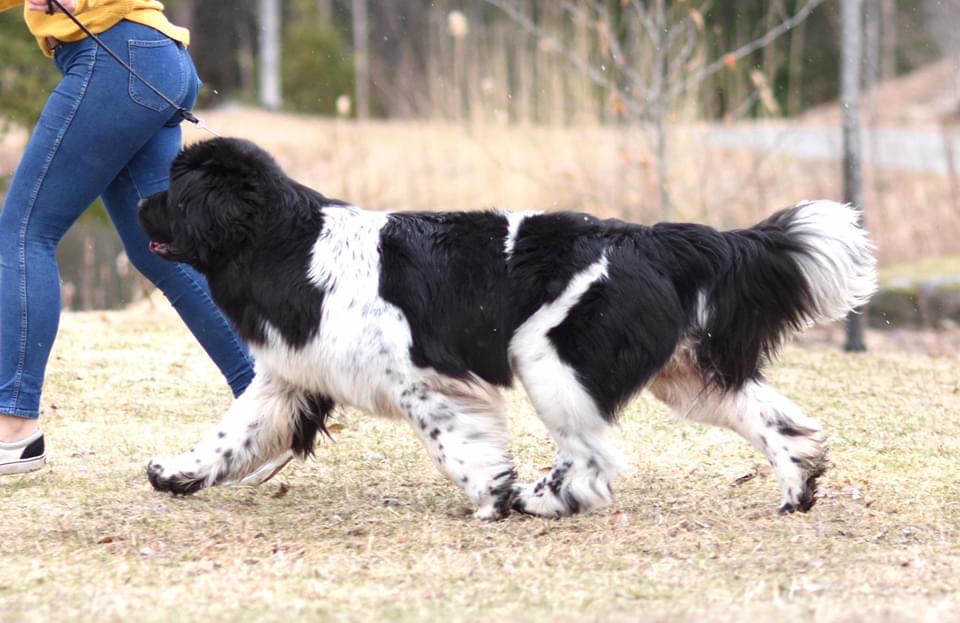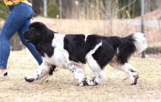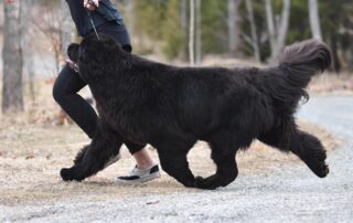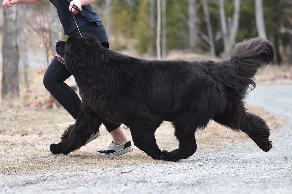 Céleste fut ma première chienne Terre-Neuve de compétition et j’ai vite réalisé que c’était une chienne extraordinaire! Il suffit de la voir bouger pour comprendre qu’un Terre-Neuve peut "voler" malgré son imposant gabarit.